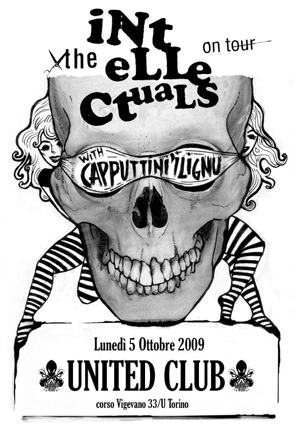 INTELLECTUALS – Nati nel ’99, con in mente il punk ’77 e il garage degli anni 60. Ora dopo tanti concerti e 10 anni di attività hanno influenze diverse pur mantenendo uno stretto legame con la matrice punk e allargato la formazione ad un terzo elemento che suona un piccolo farfisa rendendo i nostri pezzi più ‘weirdy’. Dal vivo hanno un forte impatto fun e rock’n’roll con brevi ma intense pause di raw blues. da non perdere assolutamente! Gli intellettuali di Roma sono un trio disarticolato e nevrotico che propone un deragliante sound in bilico tra low-li punk’n’roll e ‘Art-Wave’ americana anni ’70 stile Devo, Screamers etc… Con cinque album all’attivo, innumerevoli 7″ e decine di concerti in Italia ed in Europa, sono tra le bands italiane piu’ trascinanti ed apprezzate da fans ed addetti ai lavori!